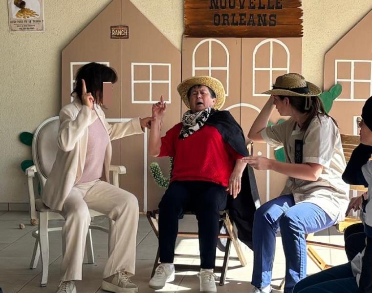 Guidés par Laetitia, notre ergothérapeute, et Lorine, notre éducatrice APA, ils ont exploré un univers western autour du thème « Mon nom est personne », mêlant danse et jeu d’acteur. Les répétitions et le tournage ont été autant de moments de partage, favorisant le lien social tout en stimulant la coordination et la mémoire.